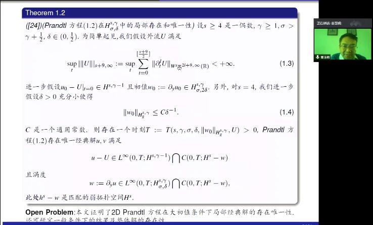 12月12日上午, 应公司邀请,东华大学秦玉明教授在线为公司师生作了题为《Prandtl方程研究进展》的学术报告。报告会由公司马巧珍教授主持,相关专业师生30余人在线收听了报告。